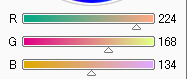 Rが赤色成分、Gが緑色成分、Bが青色成分、の量を調節します。