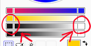 右か左の片方を白や黒にすれば、前述HSVスライダのSとかVの真似もできそうですね。