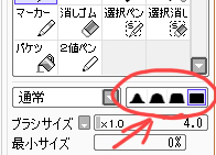 「ぼかし機能になる筆圧の設定」なので、画像で表せないので省略します。