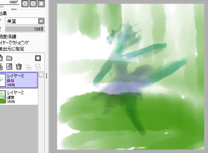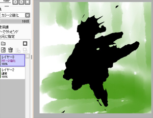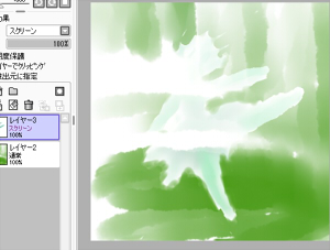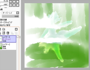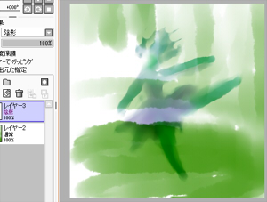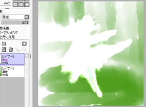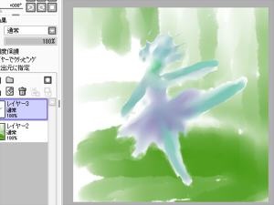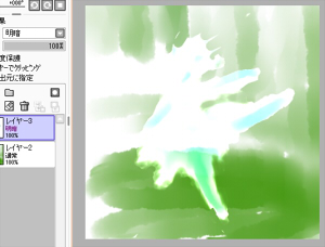 緑色の背景と、水色っぽい絵を、別々のレイヤーに描きました。
